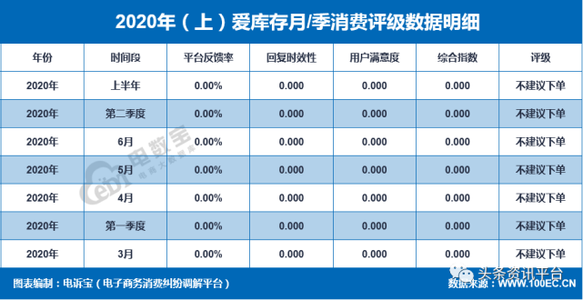 2020年上半年期间,爱库存共获7次消费评级,均获“不建议下单”评级。