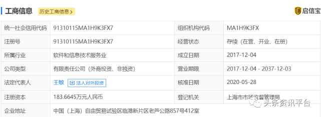 据了解,上海众旦信息科技有限公司成立于2017年12月4日,法定代表人王敏,公司股东有张冰、于海群、王敏等23位股东,注册资本183.6645万元。