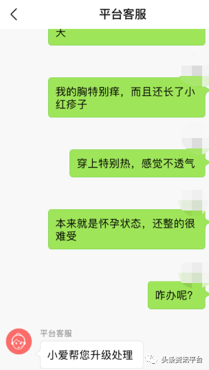 在“黑猫投诉”上,一位消费者称其6月3日在爱库存的小店购买了嫚熙的孕期、哺乳期内衣,收到产品后穿了两天,内衣完全不透气,导致她的胸部皮肤过敏严重。之后她联系爱库存客服,客服说等待处理结果,等了两天后,客服称商品洗过了不给退货,消费者表示不洗不穿怎么可能知道会过敏呢?