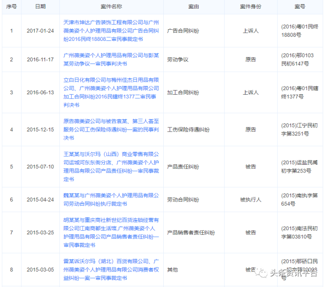 公司前身为广州薇美姿个人护理用品有限公司,现已注销。据爱企查显示,关于该公司的诉讼案件在近年来屡次发生,且该公司数次担当被告或被执行人。