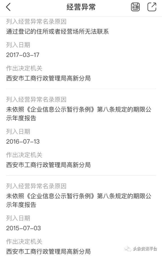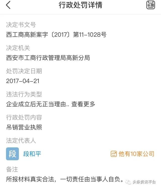 同时,他的另外一家恒德医药(西安)有限公司,曾连续三年因为未按照规定的期限公示年度报告、登记的住所或经营场所无法联系被列入企业经营异常名单,并随后在2017年受到吊销营业执照的行政处罚。