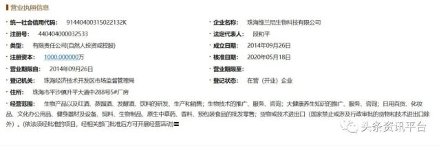 据悉,珠海维兰尼生物科技有限公司原名为珠海维兰尼酒业有限公司,主要致力于红酒制造,开发出了一款号称富含活性花青素及多种活性营养物质的新型红酒,维兰尼鲜红酒。