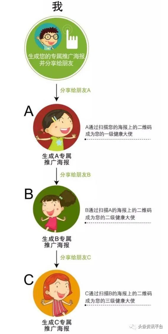 在推广的过程中将产生共享经济收益:第一人获得A消费金额的15%、B消费金额的10%和C消费金额的5%,共三重人脉收益;A获得B消费金额的15%,C消费金额的10%;而B获得C消费金额的15%,往后以此类推。