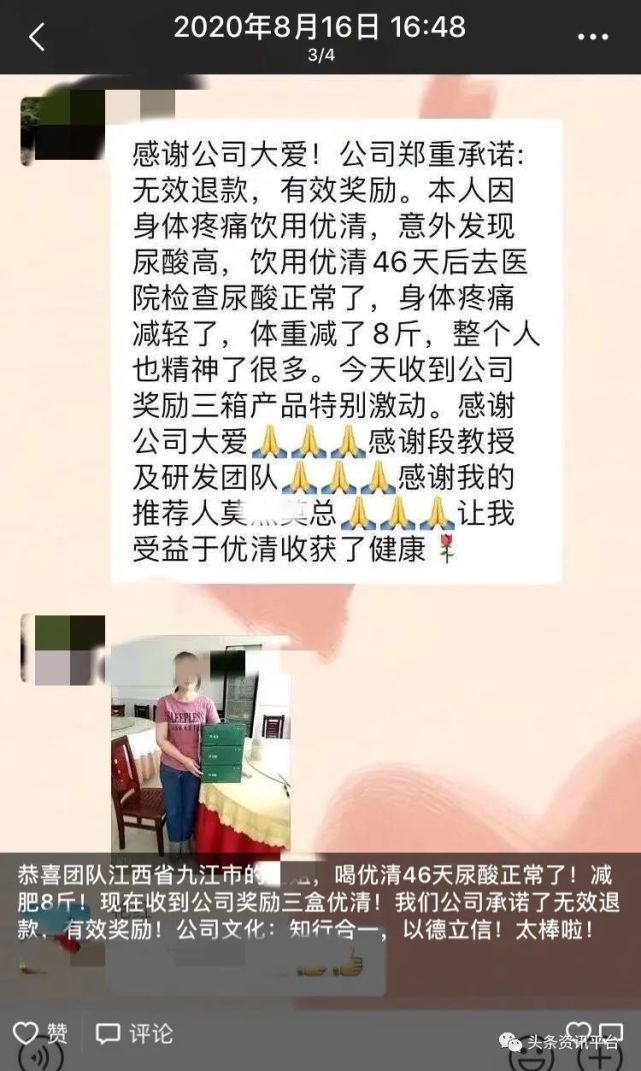 值得一提的是,公司代理还有一个获利途径,叫做万人案例:代理只要辅助顾客做出来有效的案例,公司就赠送推荐人3箱产品,价值1500元,这三箱产品可以销售给顾客,也就是等于做出来一个案例就多挣1500元。如此看来,前文我们所看到的如出一辙的患者案例,很有可能就是代理辅助顾客做出来的!