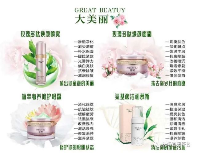 在眼下,魅树旗下的产品主要可以分为化妆品和食品两大板块,也叫大美丽板块和大健康板块。