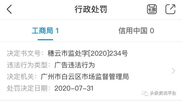 不仅如此,就在今年7月,广州市白云区市场监督管理局在对广州市名宇化妆品制造有限公司进行依法检查时发现,当事人在网站和微信公众号“名宇化妆品”上对产品“银离子洁面泡泡”宣传不当,属于广告违法行为,最后受到了责令停止发布广告并罚款69800元的行政处罚。