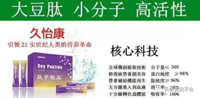 在上篇报道中,我们主要了解到了久怡康的发展历程,在本篇报道中,我们将重点关注的是久怡康的产品。据了解,在过去的这些年间,久怡康名下最为受经销商关注的产品当属久怡康大豆肽。