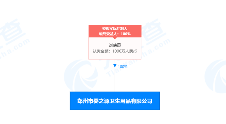 据天眼查APP显示,郑州市婴之源卫生用品有限公司成立于2018年10月9日,注册资本为1000万元,刘瑞霞担任法人、执行董事兼总经理。该公司注册商标为“婴之源”。