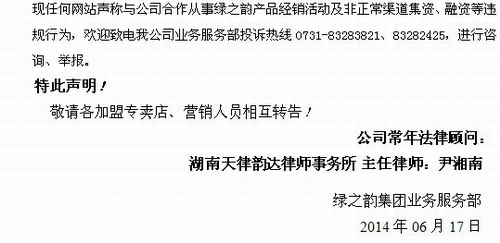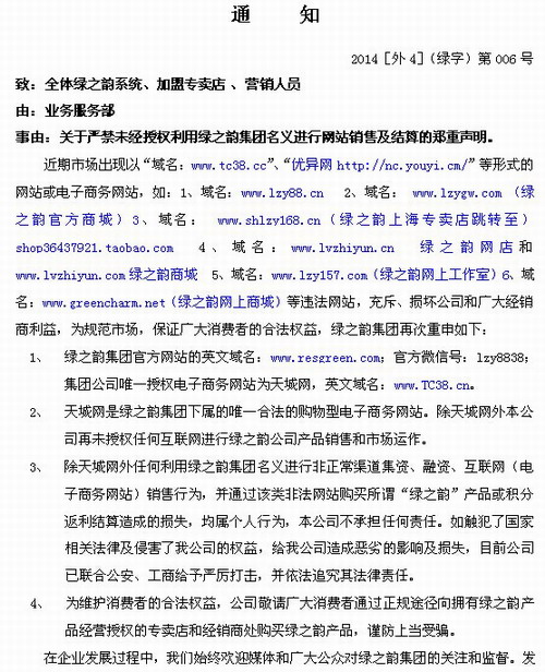 绿之韵:天城网是唯一授权电子商务网站