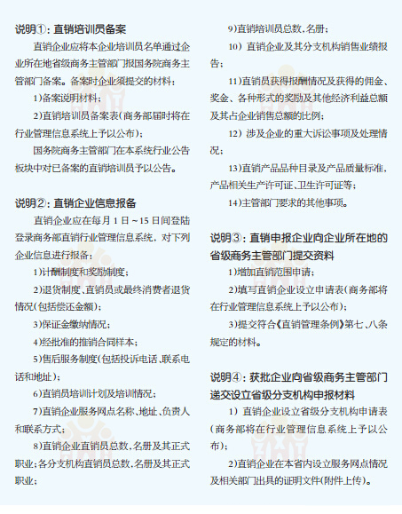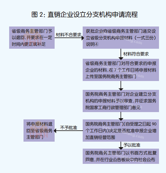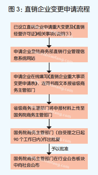 一是企业(主体)准备好申请材料,先向省级商务主管部门提出申请;接下来由省级商务主管部门对申请材料进行形式审核,并对“申牌”企业的直销活动服务网点方案进行确认;第三步就是国家商务部对省级商务主管部门转报的“申请”材料进行统一受理,并进入审批流程。