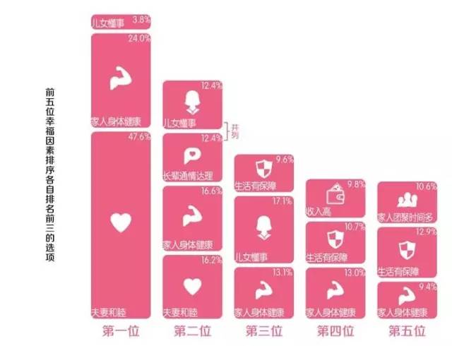 一项调查显示,在回答“您认为影响家庭幸福最重要的5个因素是什么”时,“夫妻和睦”“家人身体健康”“儿女懂事”“长辈通情达理”等成为较高选项。
