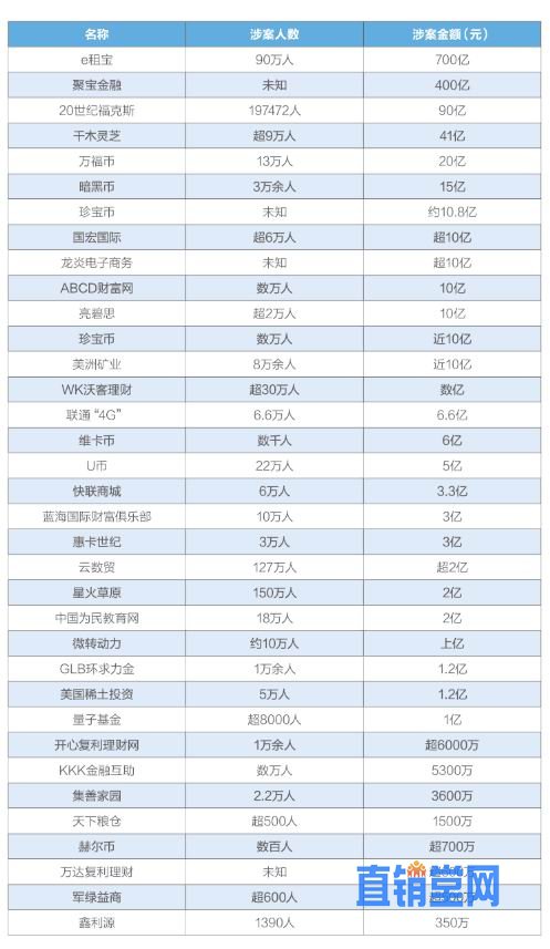 2015年,拿牌直销企业的总业绩1929亿元。而表格中仅是选取的35个资金盘项目,已知涉案人员就达到526.6万人,涉案金额达1376.1亿元,如果统计全部的资金盘,涉案金额数额之庞大无法想象。