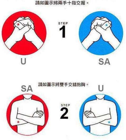 B、左手臂在上──“SA”