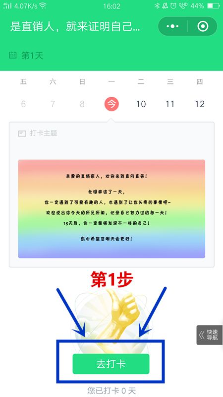 第一步:点击“去打卡”