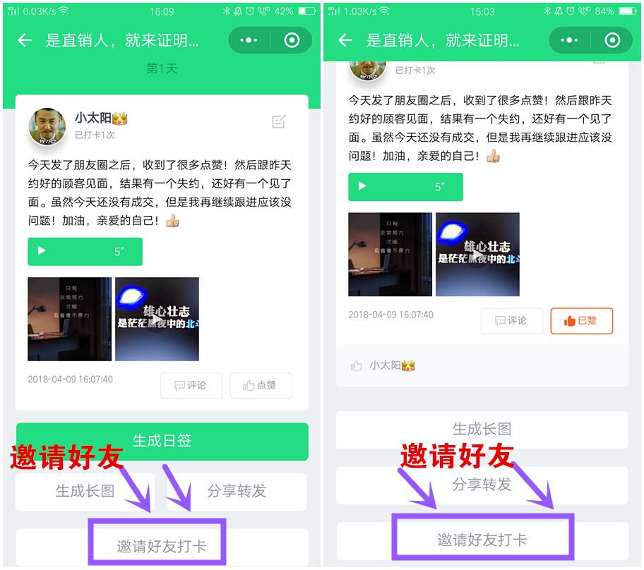 第1步:必须点击“邀请好友打卡”