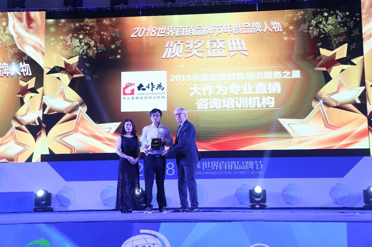 2018年6月27日,第十一届世界(中国)直销品牌节在武汉隆重举行,此次品牌节由中国世界贸易组织研究会直销研究专业委员会指导,世界个人品牌实验室、世界直销研究院联合主办。直销培训行业领导者——大作为教育咨询有限公司受邀参加,并喜获“2018年度品牌教育培训服务之星”荣誉。