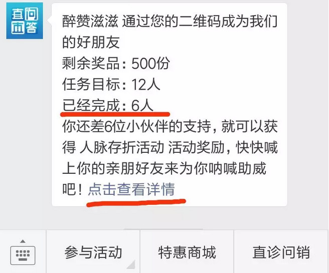 一定要分享自己的专属海报哦,必须通过你的专属海报关注的伙伴,才能算你完成的任务量哦……成功邀请12个人扫码, 进度提示如下图,完成后点击“查看详情”填写收货地址!