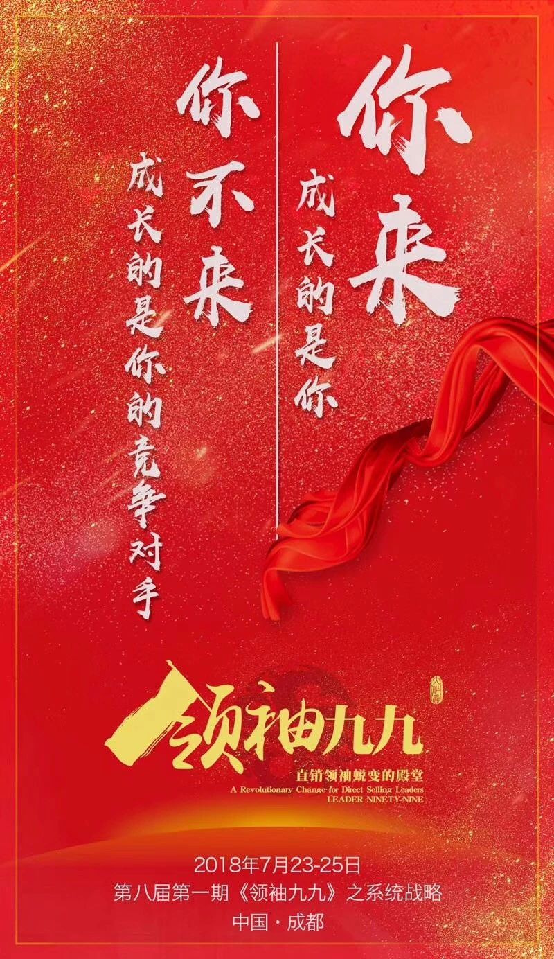 2018年7月23日,由中国直销系统研究院主办、大作为专业直销咨询培训机构承办、成都顽石通科技有限公司协办的第八届第一期《领袖九九》之“系统战略”课程在成都隆重召开。本期《领袖九九》吸引了直销界的212位系统领导人参加为期三天的领袖蜕变之旅。