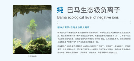 中脉颐净负离子空气净化器凝结了多位科研专家及技术人员的智慧结晶,综合运用了智能空气检测技术、四重高效杀菌技术、世界领先的负离子生发技术、全球首创的巴马空气复制技术,将一般厂商单纯的空气净化要求提升至开创生态级呼吸微环境的超高标准。为了精准复制长寿村巴马高品质的空气环境,中脉研发团队做了大量的研究和实验,通过对巴马空气质量标准的量化和对比,运用现代科技手段进行巴马空气环境的模拟复制和参照,从原材料选择、物理造型结构设计、负离子生发技术创新、清除PM2.5效果试验、除菌杀毒功能升级等多个方面着手,经过反复的科学测试和数十次改进,最终研发出了达到国际领先水平的生态级高效空气净化器,也是全球唯一运用巴马空气复制技术的空气净化器。